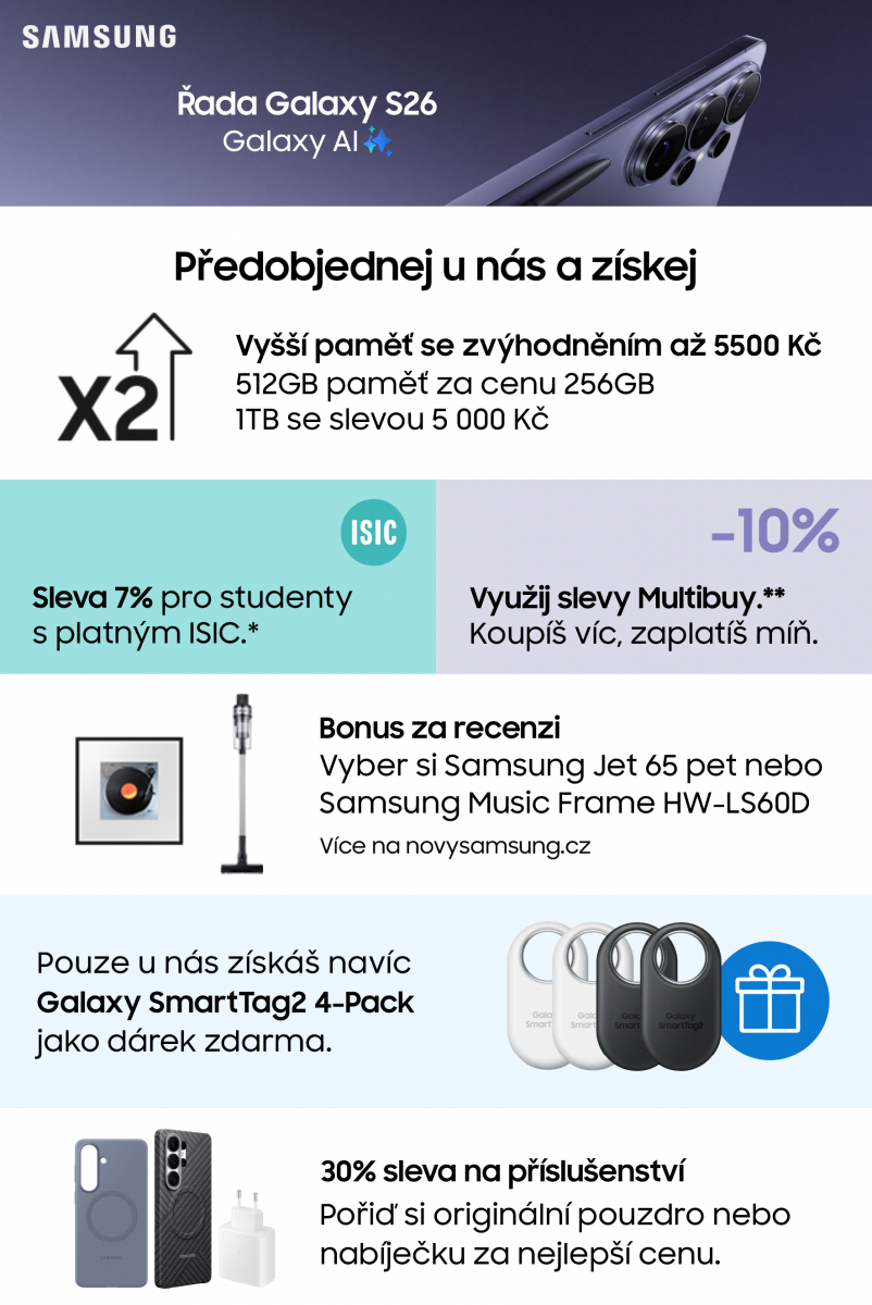 Samsung S942B Galaxy S26 5G AI 12GB/512GB černá CZ Distribuce + dárek v hodnotě 1.690 Kč ZDARMA